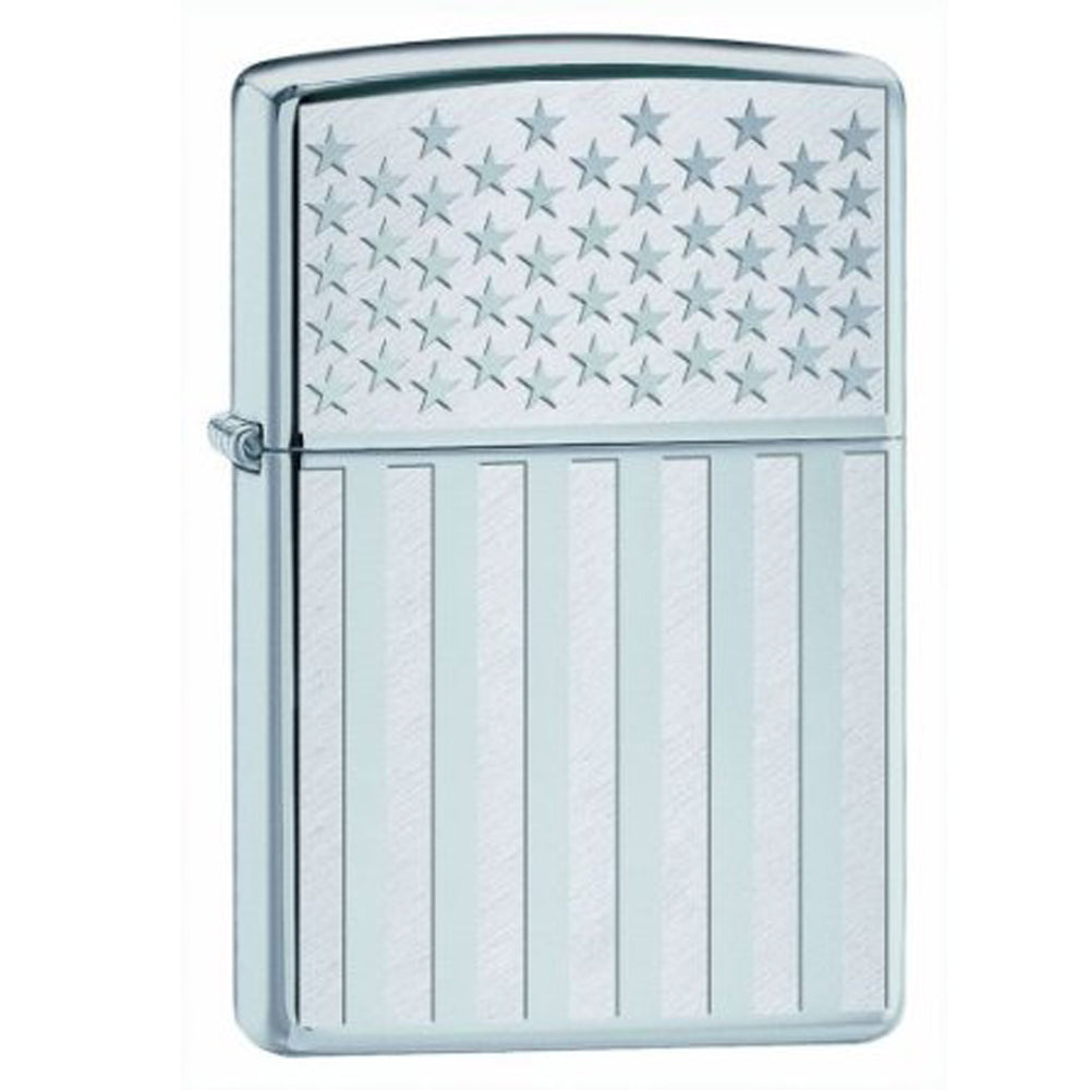 Zippo Lighter: American Flag High Polish Chrome | 250MP-AMER-FLAG