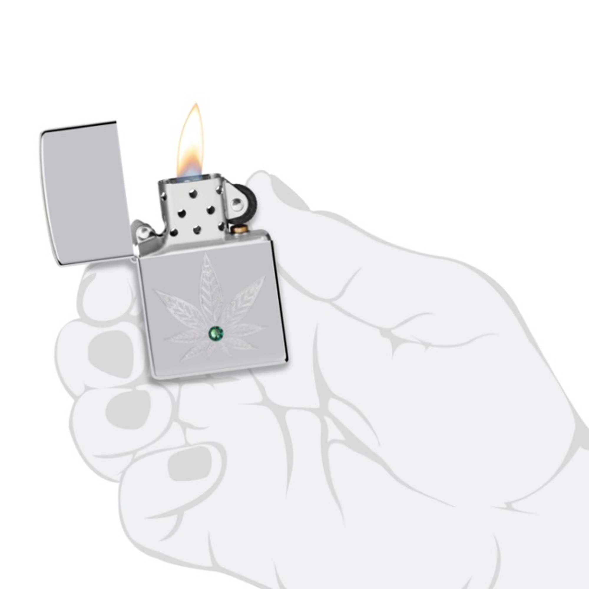 Zippo Lighter: Cannabis Crystal Design High Polish Chrome | 46126