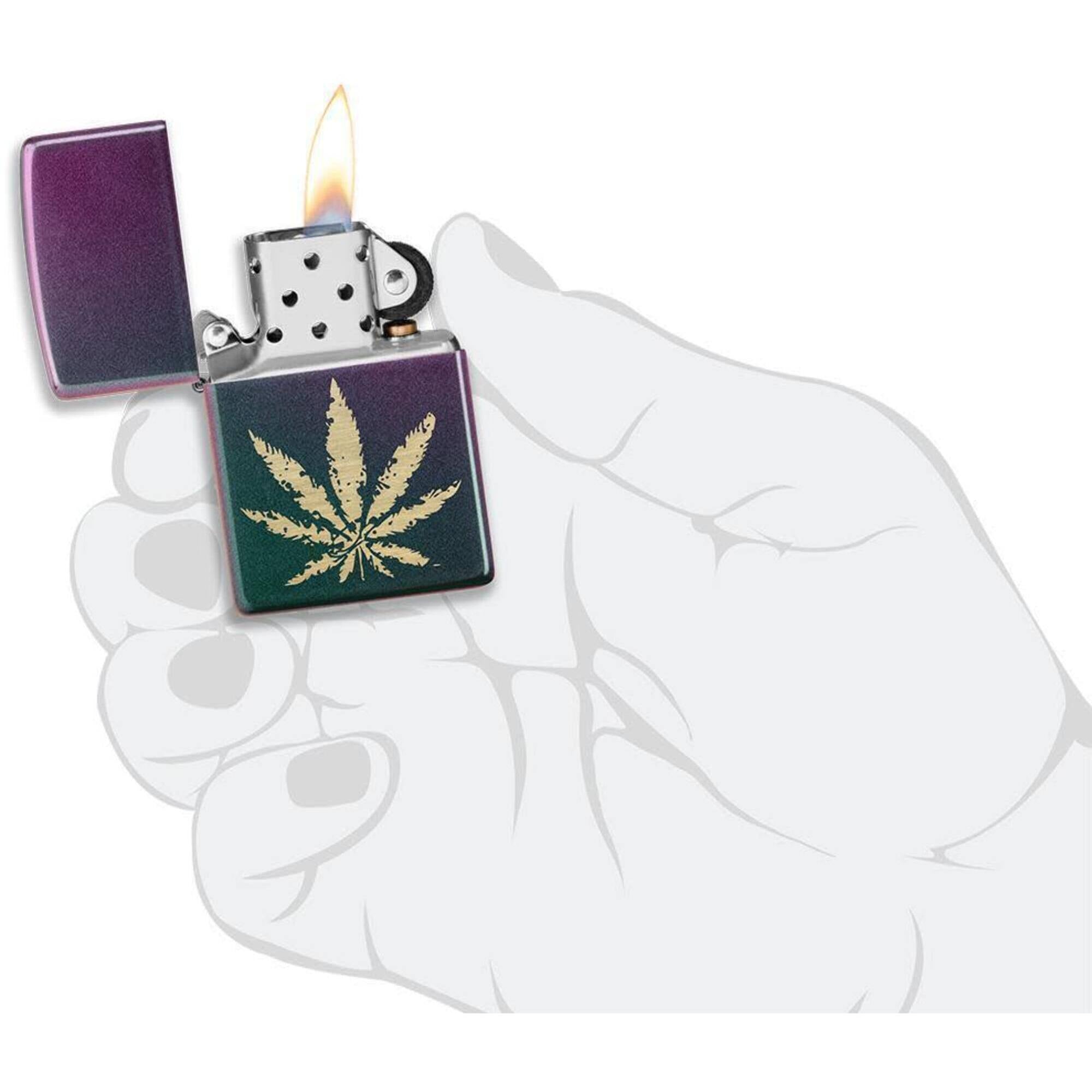 Zippo Lighter: Iridescent Marijuana Leaf Design | 49185